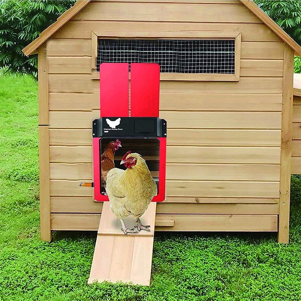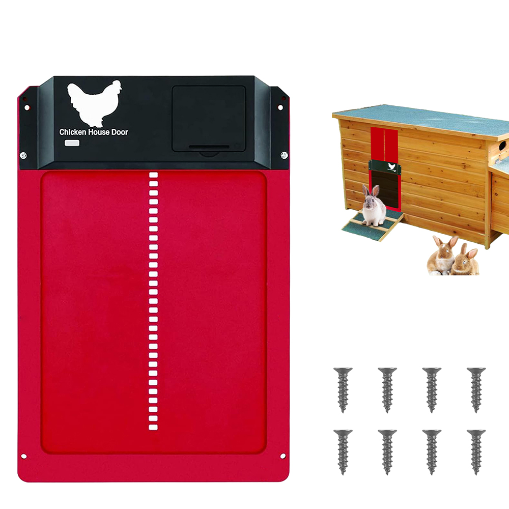Ten automatyczny mechanizm otwierania drzwi kurnika wykorzystuje tryb czujnika światła, aby automatycznie otwierać się o świcie rano i zamykać wieczorem. Wytrzymały materiał trzyma drapieżniki na dystans i chroni Twoje urocze pisklęta.