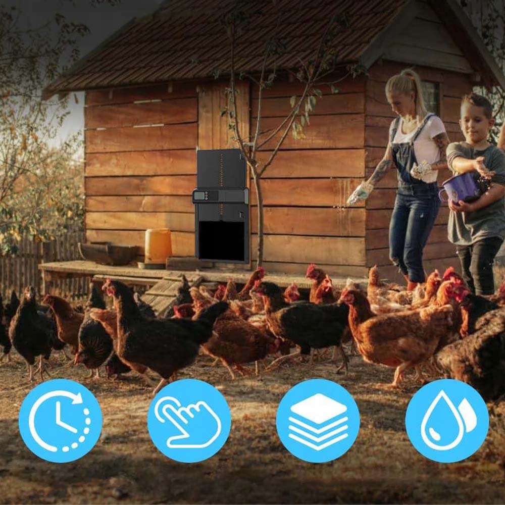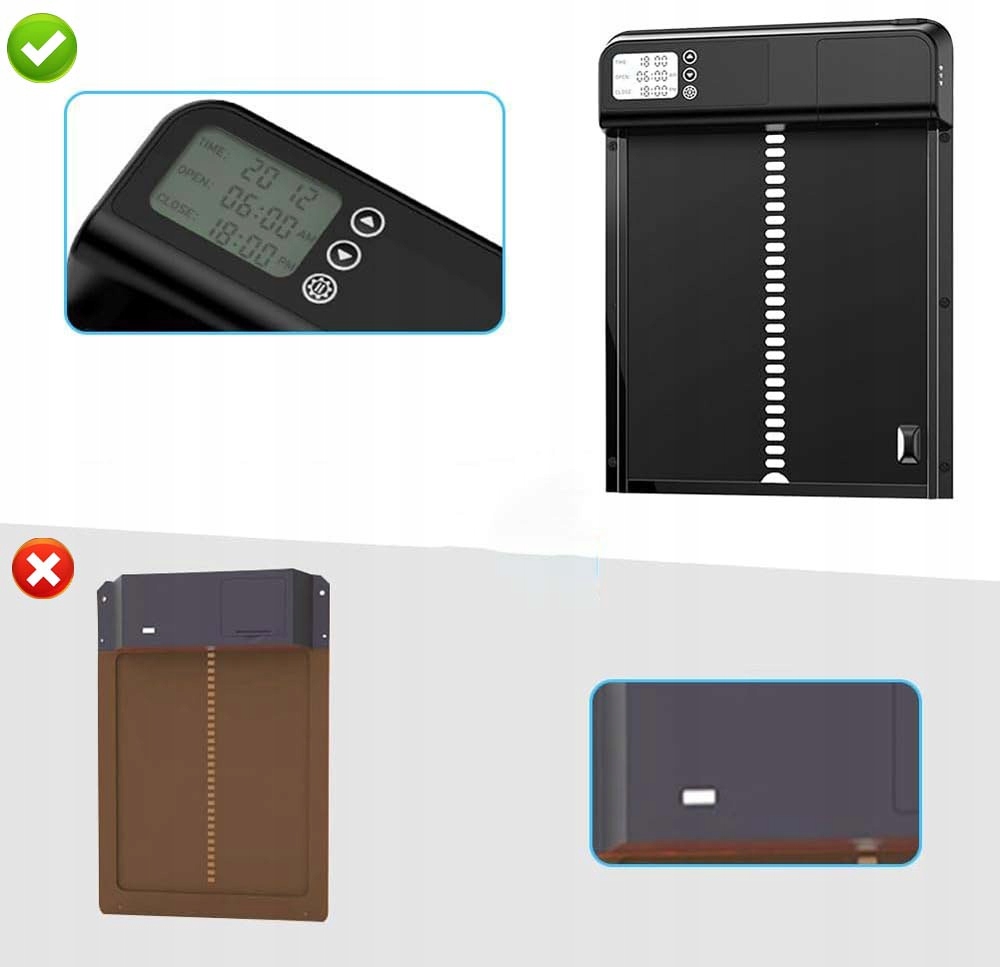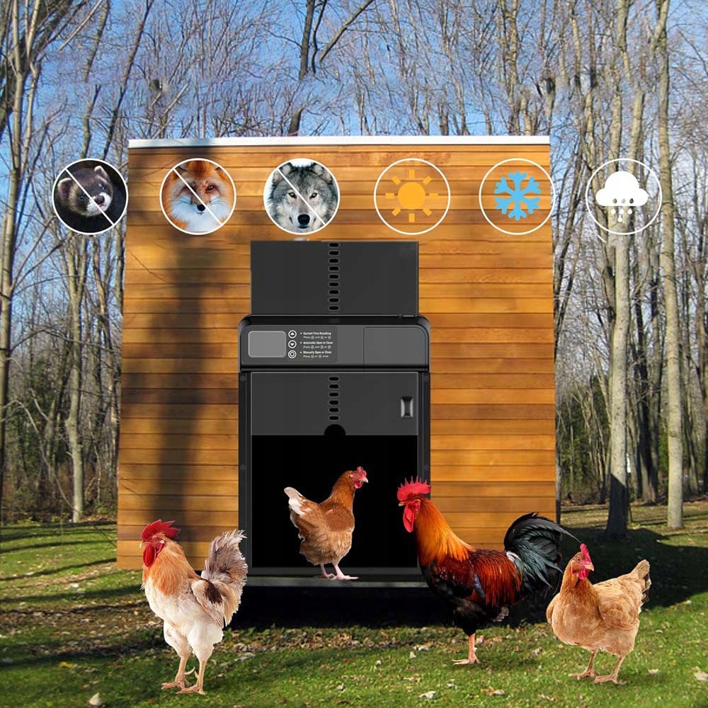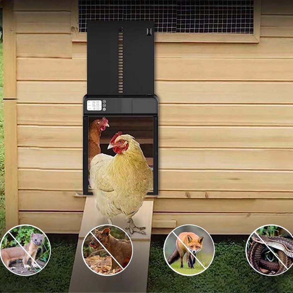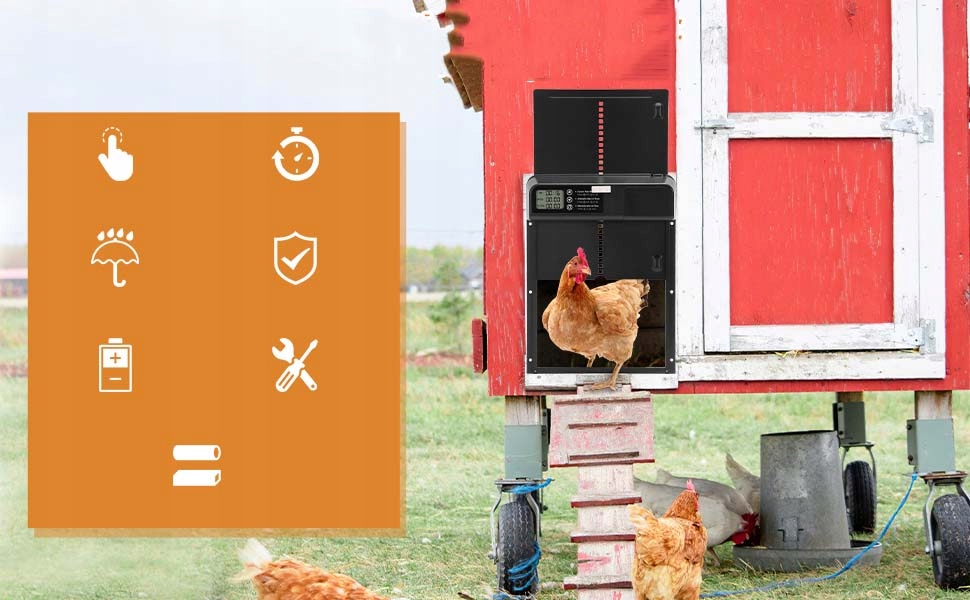 - 🐓 Wyposażony w 24-godzinny timer, czas otwierania i zamykania można dowolnie regulować każdego dnia, z dokładnością do minuty.