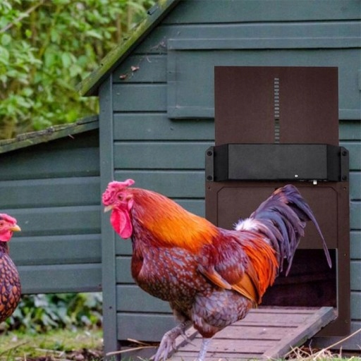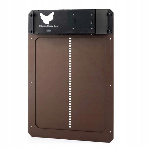 Nazwa:Automatyczne drzwi do kurnika Materiał: plastik Kolor:brązowy Rozmiar: 35x24x3.7 cm Wodoodporność: IP44 Bateria: 3 baterie AA (brak w zestawie) Funkcja: czujnik światła (otwieraj drzwi mocnym światłem, zamykaj drzwi w ciemności), możliwość podnoszenia i opuszczania, wodoszczelny (IP44) Pakiet zawiera: 1 x Automatyczne drzwi do kurnika