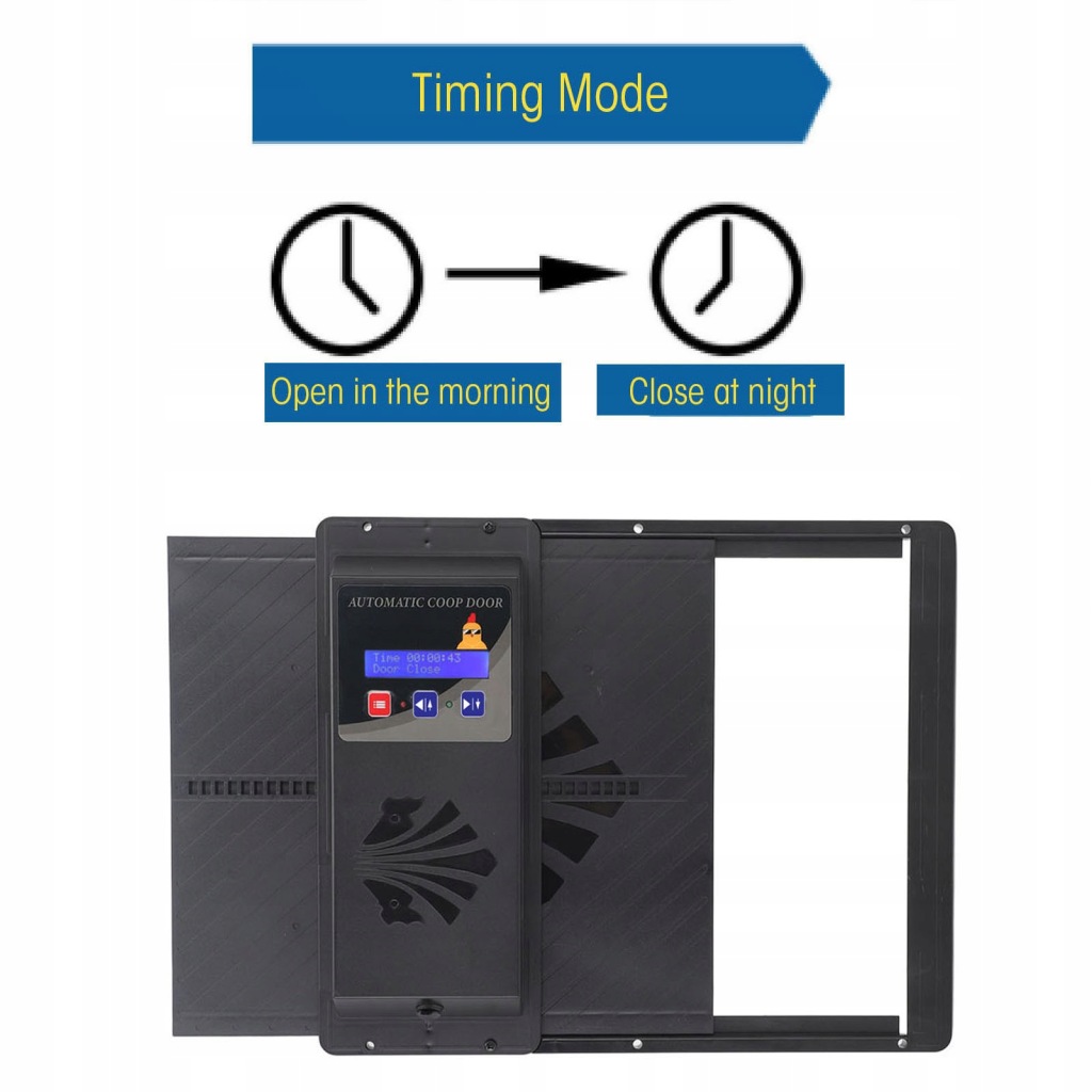 ✔️Łatwy w użyciu: łatwo jest zaprogramować przyciski. Automatyczne drzwi do kurnika otwierają się automatycznie rano i zamykają w nocy.