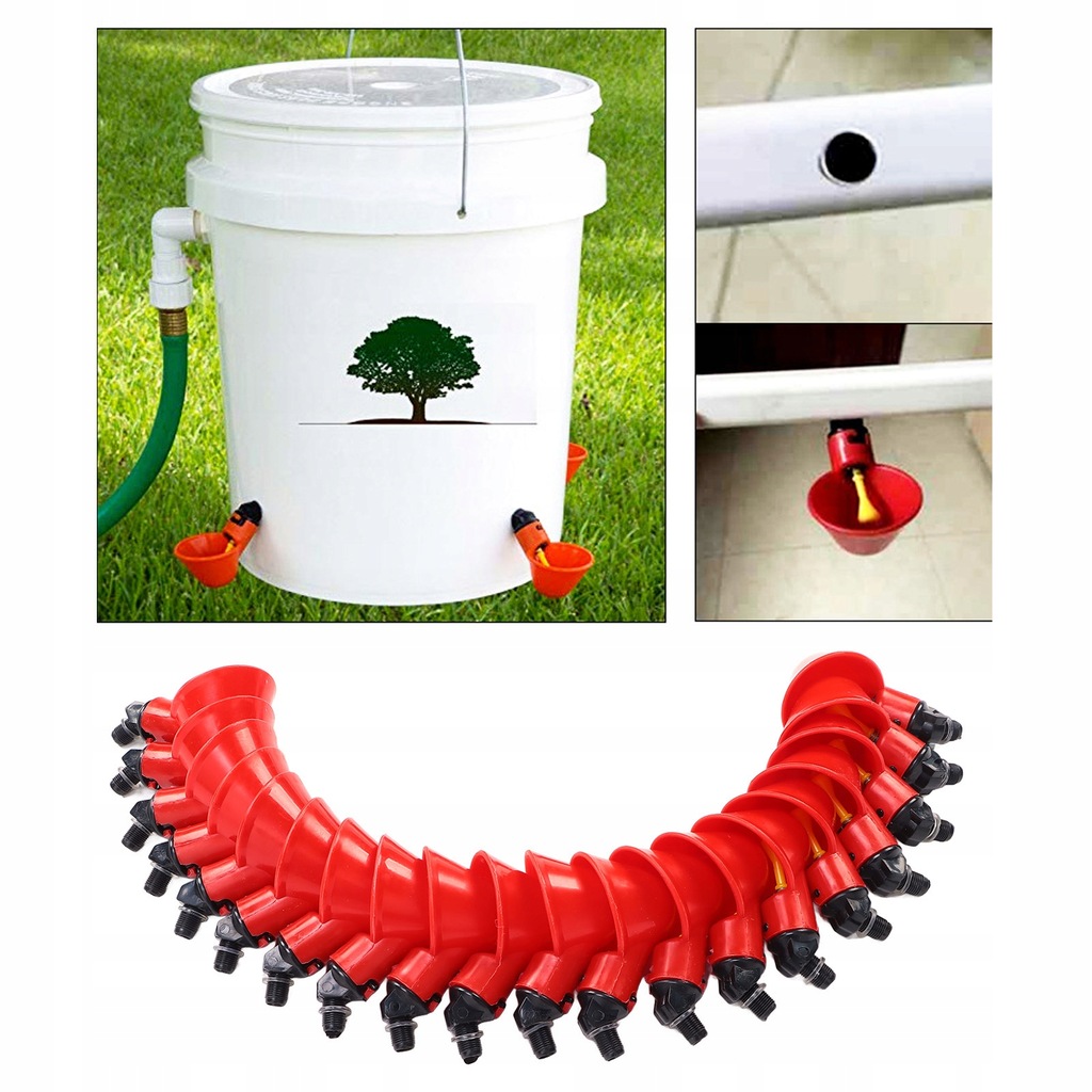 Funkcja: 1. MATERIAŁ Z TWORZYWA SZTUCZNEGO Poidło do kurczaka jest wykonane z tworzywa sztucznego, bezpieczne i nietoksyczne, nie szkodzi zdrowiu zwierząt domowych. 2. Z ŁBAMI ŚRUB Za pomocą łbów śrub można wykonać otwory na rurze wodnej lub wiadrze do karmienia, które można bezpośrednio obracać i instalować. 3. SAVE WATER Accuracy Przełącznik sprężynowy zaworu kulowego, z gumową podkładką, aby zapobiec wyciekowi wody na interfejsie i zaoszczędzić każdą kroplę wody. 4. ZDEJMOWANA MISKA NA WODĘ Obróć, aby wyjąć, łatwa do usunięcia i zainstalowania, długa żywotność, wysoki współczynnik wietrzenia i odporność na upadki. 5. UNIWERSALNY Odpowiedni dla kurczaków, brojlerów, reproduktorów, kurcząt, kaczek, gołębi, ptaków, przepiórek, kur, indyków, gęsi i innego drobiu.