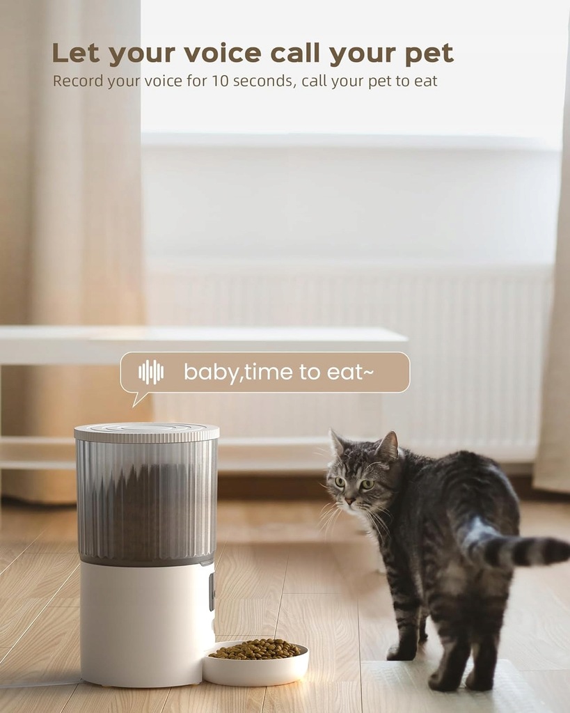 Inteligentna aplikacja i zabawna interakcja】Nasz automatyczny podajnik karmy dla zwierząt jest łatwy w konfiguracji. Obsługuje zarówno 2,4 GHz. Karm swojego zwierzaka w dowolnym czasie i miejscu za pomocą aplikacji. Nagrane wcześniej 10-sekundowe głosy odtwarzane podczas karmienia. Pozwól swojemu zwierzakowi pokochać Twój głos.