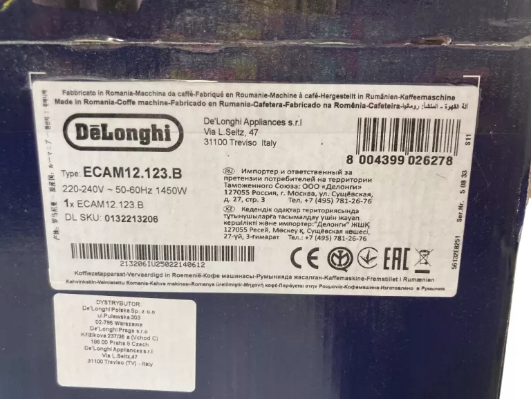 Przedmiotem sprzedaży jest: AUTOMATYCZNY EKSPRES CIŚNIENIOWY DE'LONGHI ECAM12.123.B