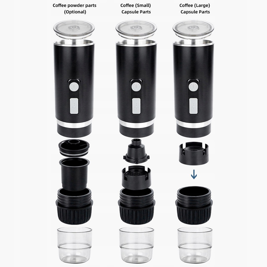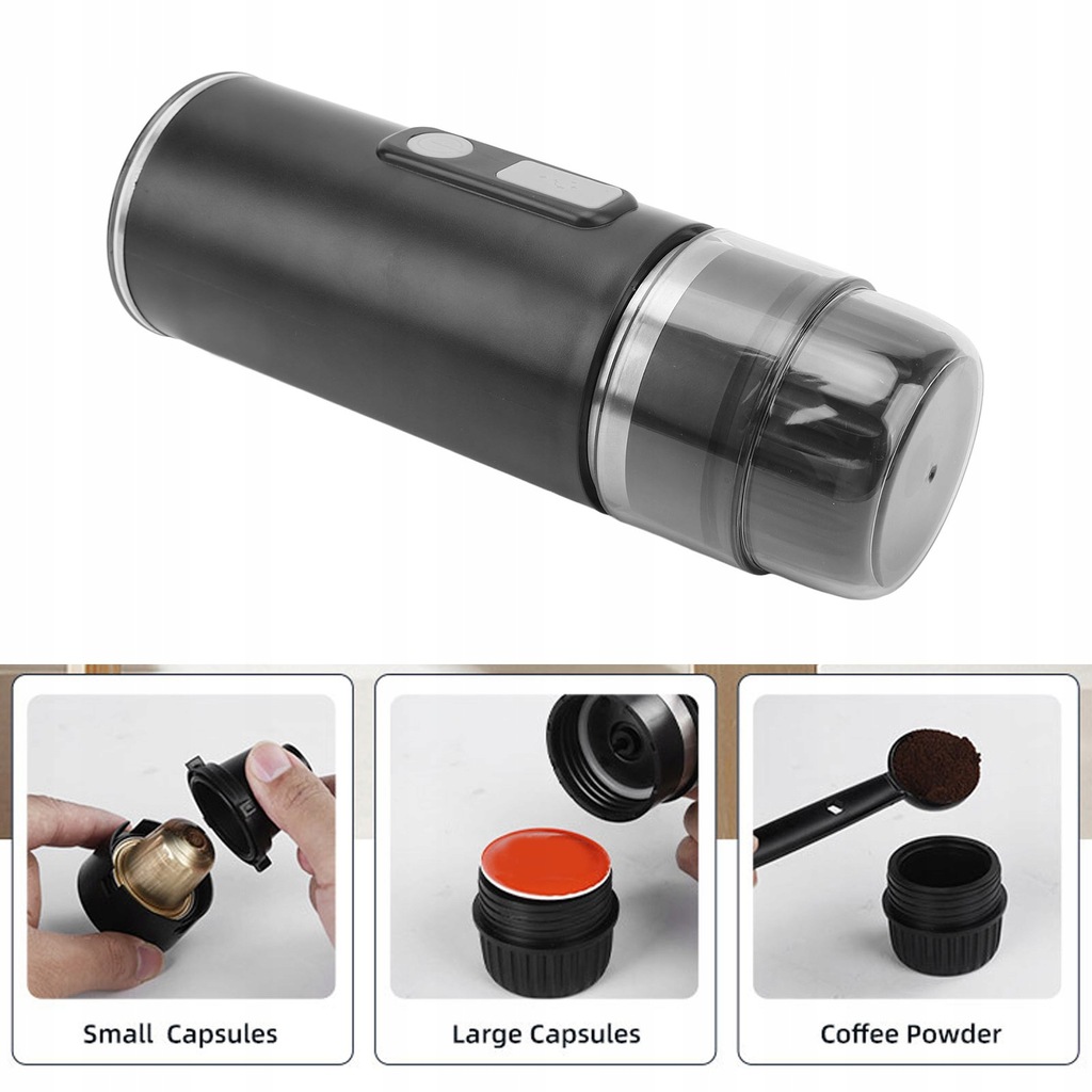 1. Akumulator: przenośny ekspres do kawy z kablem do ładowania typu C, akumulatorem o pojemności 800 mAh, pozwala używać w dowolnym miejscu i czasie