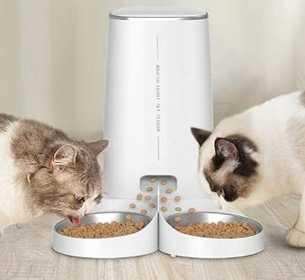 - Dwie miski: Automatyczny karmnik wyposażony jest w dwie miski, co umożliwia jednoczesne karmienie dwóch zwierząt lub serwowanie różnych rodzajów karmy.