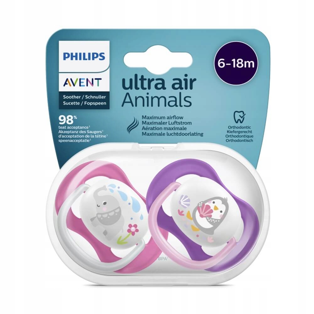 Ukołysz dziecko dzięki smoczkowi, który pozwala skórze oddychać. Kolekcja Philips Avent Ultra Air wyposażona jest w bardzo duże otwory, które pozwalają skórze oddychać. Lekka osłonka zapewnia maksymalny przepływ powietrza.