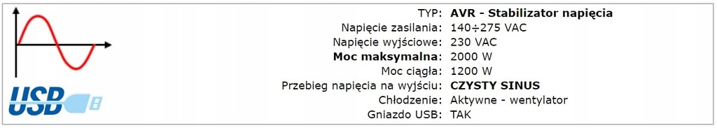 - Napięcie wyjściowe [VAC]: 230 VAC