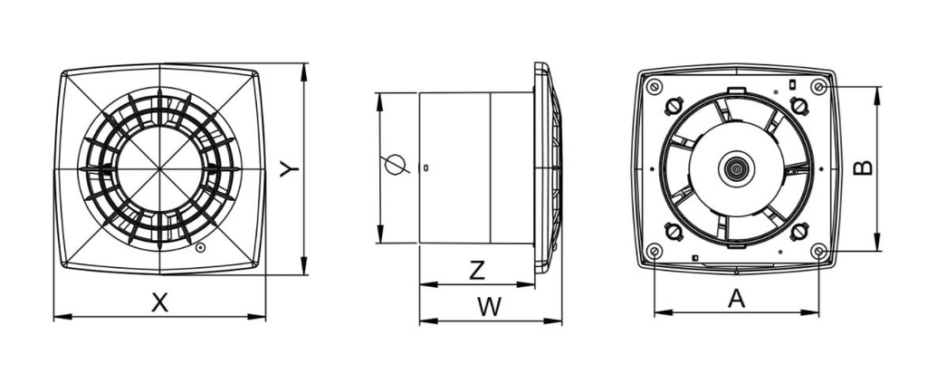 Ten model wentylatora jest wyposażony w czujnik wilgoci (higrostat) i wyłącznik czasowy (timer).
