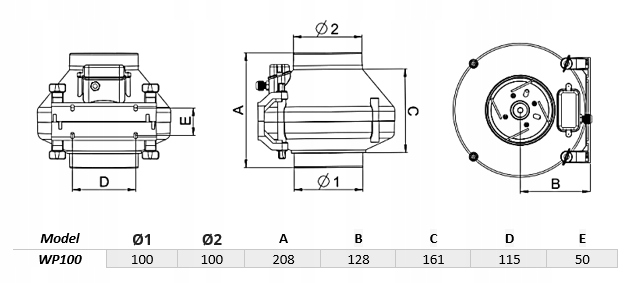 Wentylatory promieniowe WP są montowane w kanałach wentylacyjnych w pozycji poziomej oraz pionowej i są przeznaczone do wentylacji