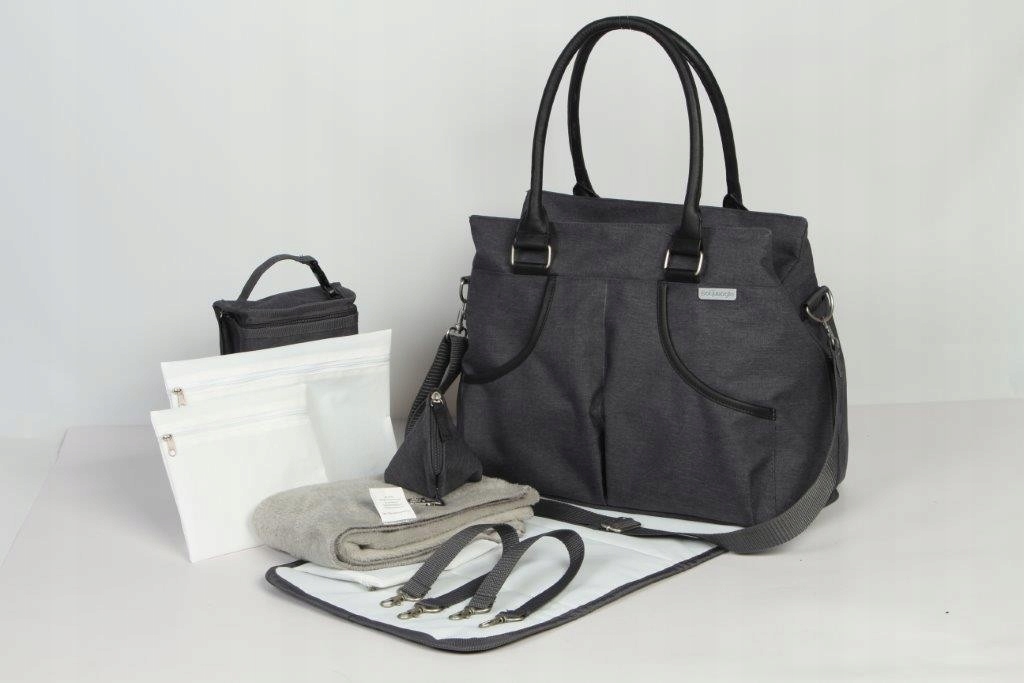 Bardzo pojemna torba na akcesoria do wózka ze wszystkimi niezbędnymi rzeczami w modnym, miejskim stylu! Może być również używana przez mamę jako normalna torebka, gdy torba na dziecięce akcesoria nie jest już potrzebna.