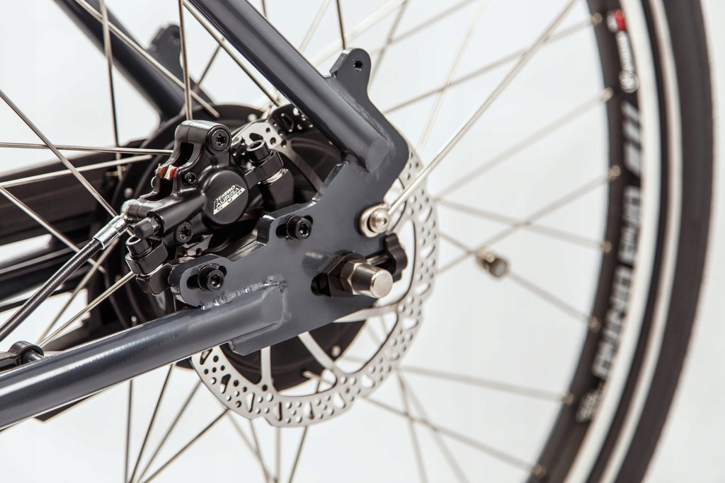 - Hamulce: hydrauliczne tarczowe Tektro z przodu i z tyłu.