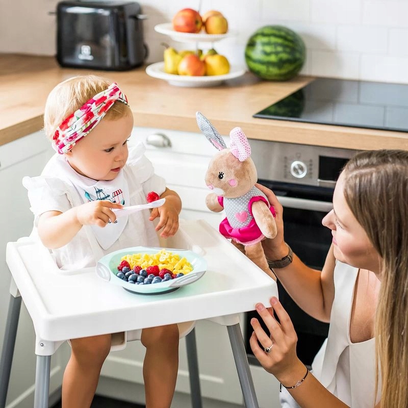 Gumowa przyssawka uniemożliwia przesuwanie się talerza po stole, chroniąc jednocześnie zawartość przed rozlaniem.