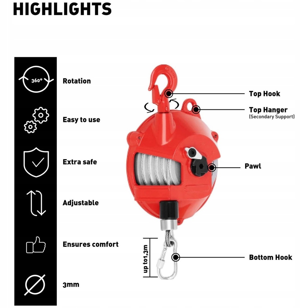 Balanser linkowy sprężynowy odciążnik do narzędzi 3 - 5 kg 1,3 m
