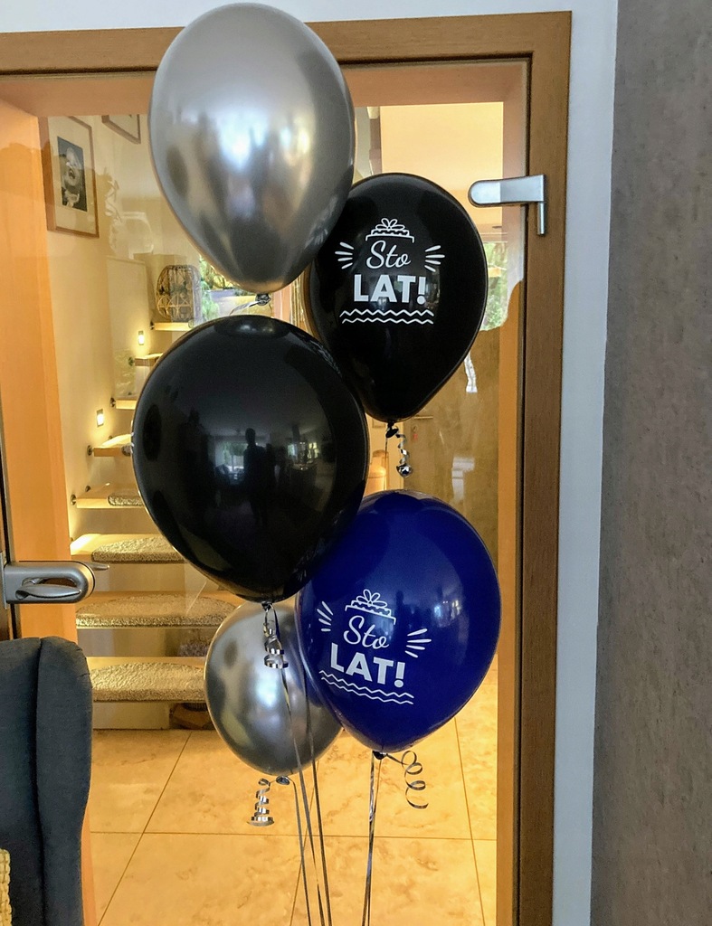 Balony lateksowe urodzinowe w kolorze czarnym i granatowym (mix w paczce) z polskim, dwustronnym napisem:
