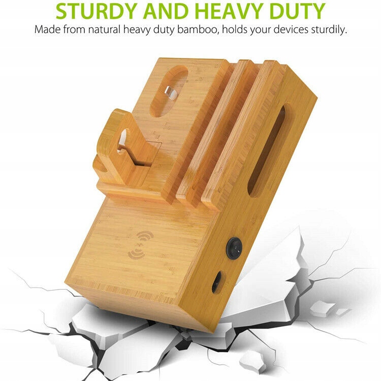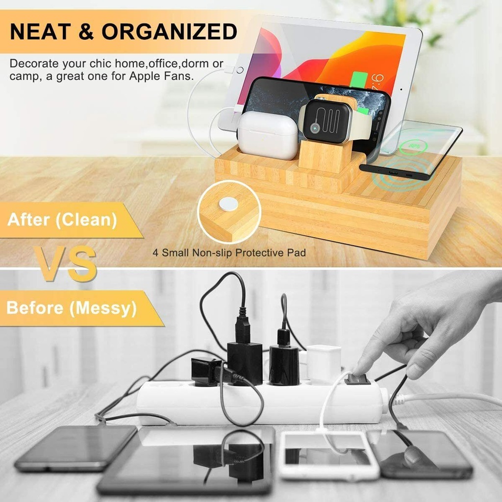 Wyjmowana Ukryta Przestrzeń do Przechowywania - Wyjmowalna i stabilna konstrukcja bambusowej stacji ładowania umożliwia łatwe ukrycie wszystkich kabli, utrzymanie ich w porządku i zaoszczędzenie więcej miejsca do ozdabiania twojego eleganckiego domu, biura, pokoju na kampusie, doskonałe dla miłośników Apple.