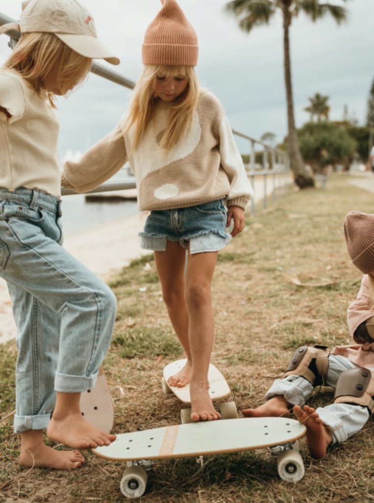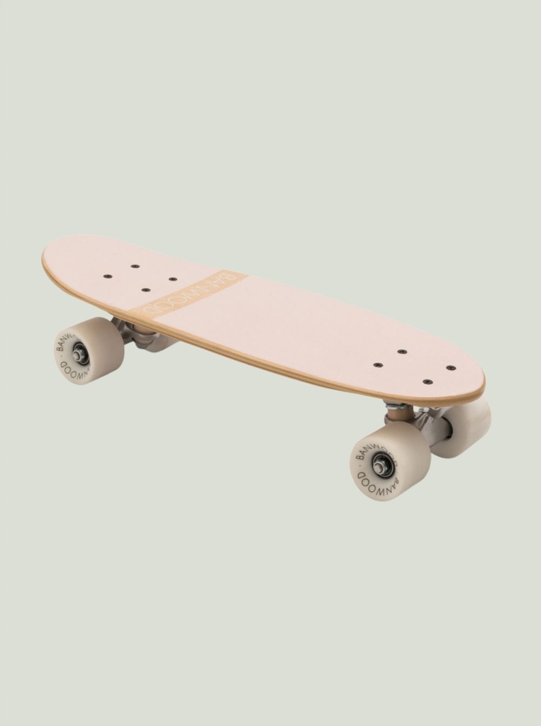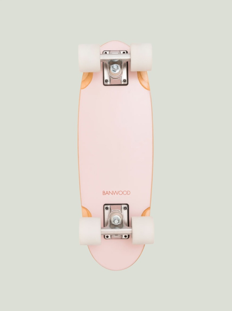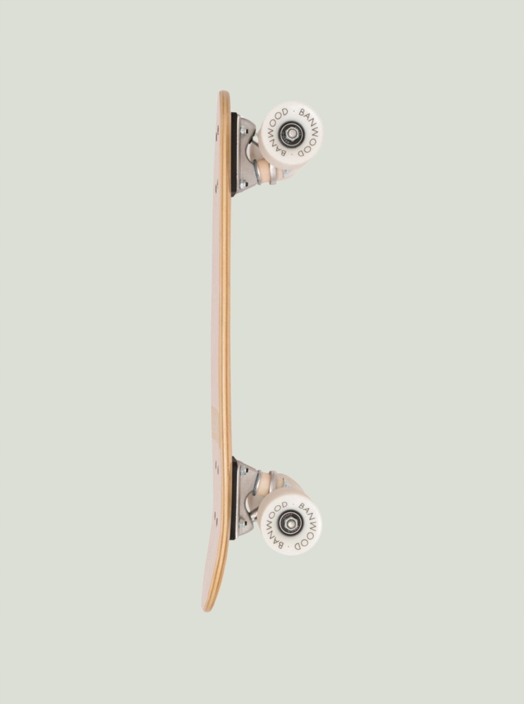 Banwood Skateboard to niewielka deskorolka typu cruiser zaprojektowana z myślą o relaksującej jeździe, z której mogą cieszyć się zarówno początkujący, jak i doświadczeni skaterzy. Wykonany z naturalnego klonu kanadyjskiego, deck posiada miękką, przezroczystą taśmę antypoślizgową, idealną dla delikatnych stóp Twojego malucha. Deski wyposażone są w miękkie koła o dużej sprężystości, zaprojektowane do łatwej i stabilnej jazdy. Nowa kolekcja deskorolek Banwood łączy prostotę i funkcjonalność z wyrafinowanym wzornictwem w stylu vintage. Deskorolki dostępne są w 8 pastelowych wzorach a każdy z nich przeniesie Was do złotego wieku Kalifornii lat 70-tych. Specyfikacja techniczna: Zalecany wiek 3+ Waga: 1,9 kg Skład: - Deck z klonu kanadyjskiego z miękką przezroczystą taśmą antypoślizgową - Solidna, 8-warstwowa płyta - Wymiary: 51,9 x 17 cm - Logo Banwood z przodu i z tyłu Koła: - Białe koła o wysokiej sprężystości: (SHR80A PU) - Logo Banwood - Wymiary: 5,8 x 4,5 cm - Łożyska chromowane ABEC-7 - Odlew PU SHR90A