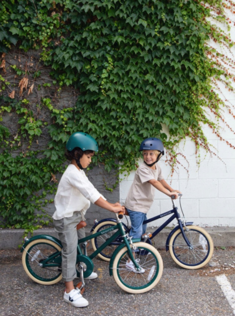 Zainspirowane stylem retro i skandynawskim wzornictwem. Lekka aluminiowa rama, brązowe skórzane siodełko i dopasowane uchwyty, sprawią, że jego właściciel będzie najbardziej "cool" mini rowerzystą w okolicy! Rowerek wyposażony jest w unikatowe palisandrowe pedały, stylowe kremowe opony oraz wiklinowy, odpinany kosz, idealny do spakowania prowiantu na dzień pełen przygód.