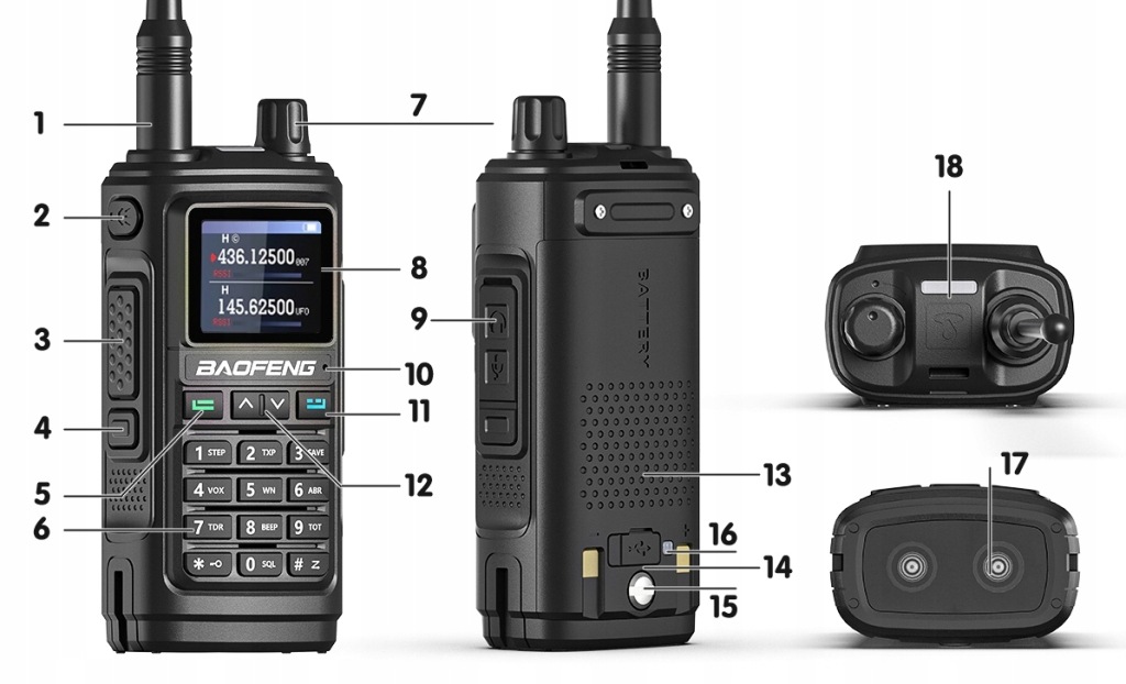 BAOFENG UV-17E KRÓTKOFALÓWKA RADIOTELEFON WALKIE TALKIE PMR VHF UHF USB-C