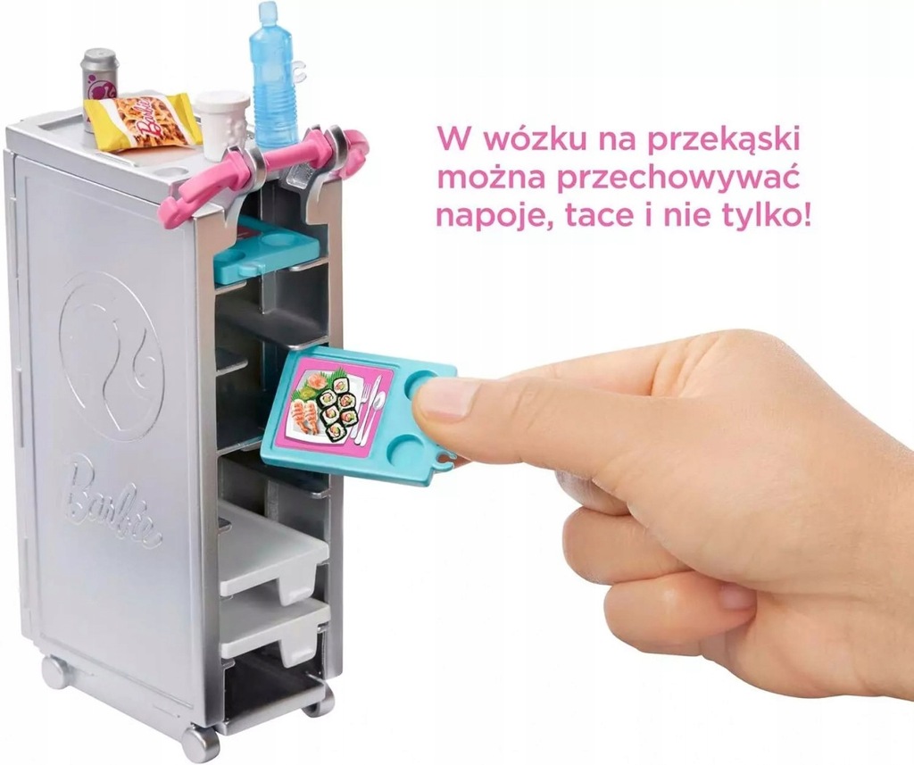 Dzieci mogą posadzić lalkę na fotelu pilota i popchnąć samolot na kółkach, by zaczął kołować, lub otworzyć dach i bok, by odgrywać w środku scenki z podniebnej podróży. Realistyczne detale takie jak opuszczane siedzenia, otwierane schowki i wózek na przekąski z wyjmowanymi tacami to bilet do świata fantastycznej zabawy. A szczeniaczek to doskonały towarzysz podróży dla lalki pilotki Barbie! Pozostałe akcesoria pozwalają odtwarzać jedzenie, drzemkę i wypoczywanie przy filmie latanie jeszcze nigdy nie było tak przyjemne! Fani serialu Barbie Dreamhouse Adventures mogą odgrywać filmowe sceny lub wymyślać własne scenariusze podróży!
