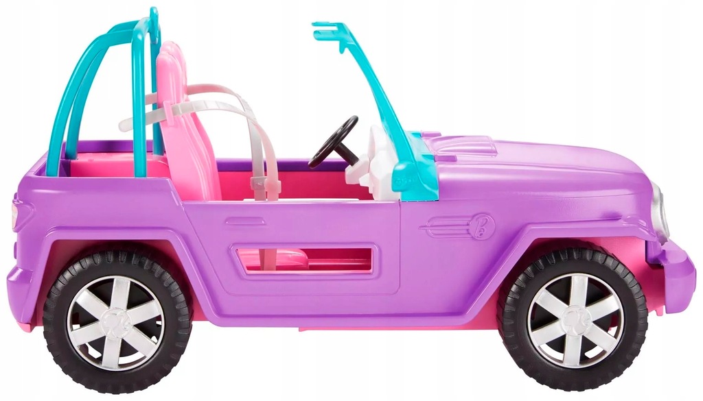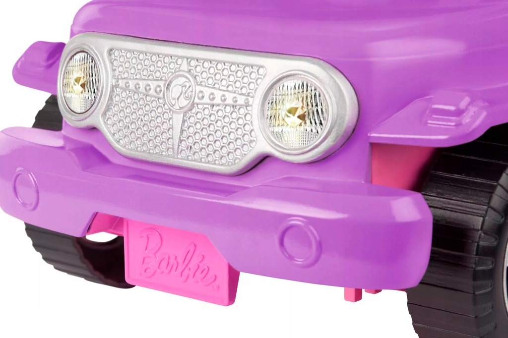 Obracające się kółka i otwarta przestrzeń nadają zabawie realizmu i pozwalają wyruszyć na wyprawę życia z lalką Barbie i jej przyjaciółką (lalki sprzedawane osobno). Wystarczy popchnąć pojazd, by zaczęły się obracać cztery koła z felgami w srebrnym kolorze i oponami z bieżnikiem. Ten kolorowy jeep pasuje do charakterystycznego stylu Barbie: ma fioletową karoserię, różowe wnętrze i jasnoniebieskie detale. Auto terenowe z wesołymi akcentami – takimi jak logo Barbie i spersonalizowana tablica rejestracyjna – jest gotowe, by ruszyć na zew przygody. Daj się ponieść wyobraźni, bo kiedy dzieci bawią się Barbie, mogą być kim chcą! Zbieraj lalki i akcesoria Barbie, aby poszerzyć możliwości zabawy (produkty sprzedawane oddzielnie w zależności od dostępności).