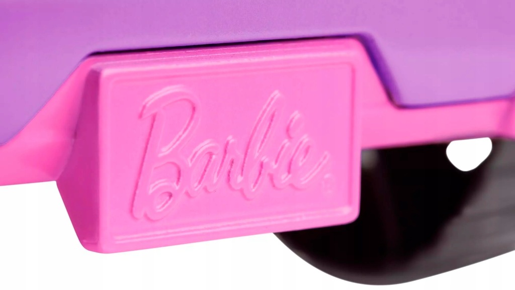 Detale – takie jak logo Barbie i spersonalizowana tablica rejestracyjna – nadają pojazdowi charakterystyczny styl.