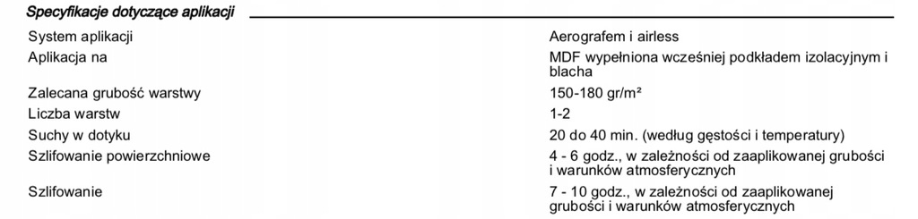 Produkt wskazany do aplikacji na płytach MDF. Bardzo dobrze poddaje się szlifowaniu zarówno ręcznemu jak i maszynowemu.