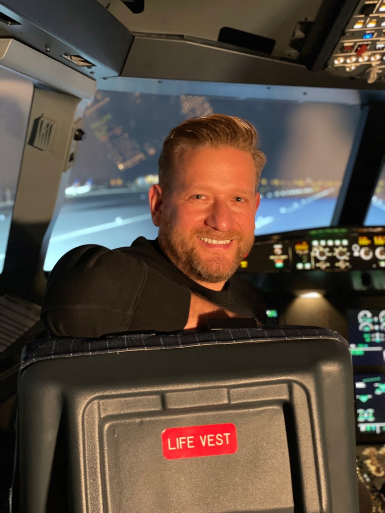 Lot z kapitanem Piotrem Lipińskim w profesjonalnym symulatorze Airbusa A320