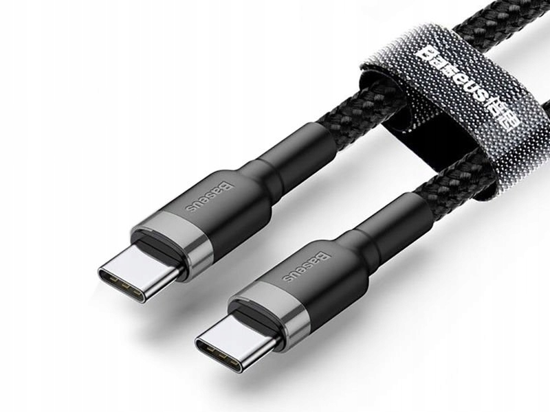 Długość przewodu wynosi 200cm, co idealnie przełoży się na chwile, w których gniazdko czy inną formę zasilania mamy od siebie mocno oddaloną. Kabel do ładowania i transmisji Baseus obsługuje technologię Quick Charge 3.0 oraz Power Delivery, co pozwoli na bardzo szybkie naładowanie naszego urządzenia, natomiast prędkość transmisji danych sięgająca 480Mbps, zapewni nam szybki transfer plików. Kabel wyposażony jest w podwójne złącze USB-C