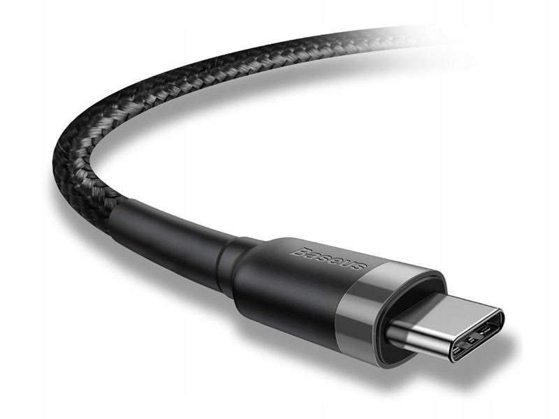 Kabel Baseus Cafule Cable to w 100% oryginalny produkt marki Baseus. Przewód został wykonany z połączenia aluminium, odpornego TPE oraz nylonu. Przednia część obudowy wraz ze złączem USB-C zostały wykonane z aluminium, natomiast całość pokryta została nylonowym oplotem, który zwiększa trwałość i zabezpiecza przed niechcianymi uszkodzeniami. Zastosowanie nylonu, jako oplot zapobiega zwijaniu i splątaniu się kabla, co dodatkowo podnosi jego funkcjonalność. Ciekawym dodatkiem jest opaska na rzep, dzięki której możemy spiąć kabel do ładowania USB-C dla większej wygody przenoszenia czy też zwinięcia po zakończonej pracy.