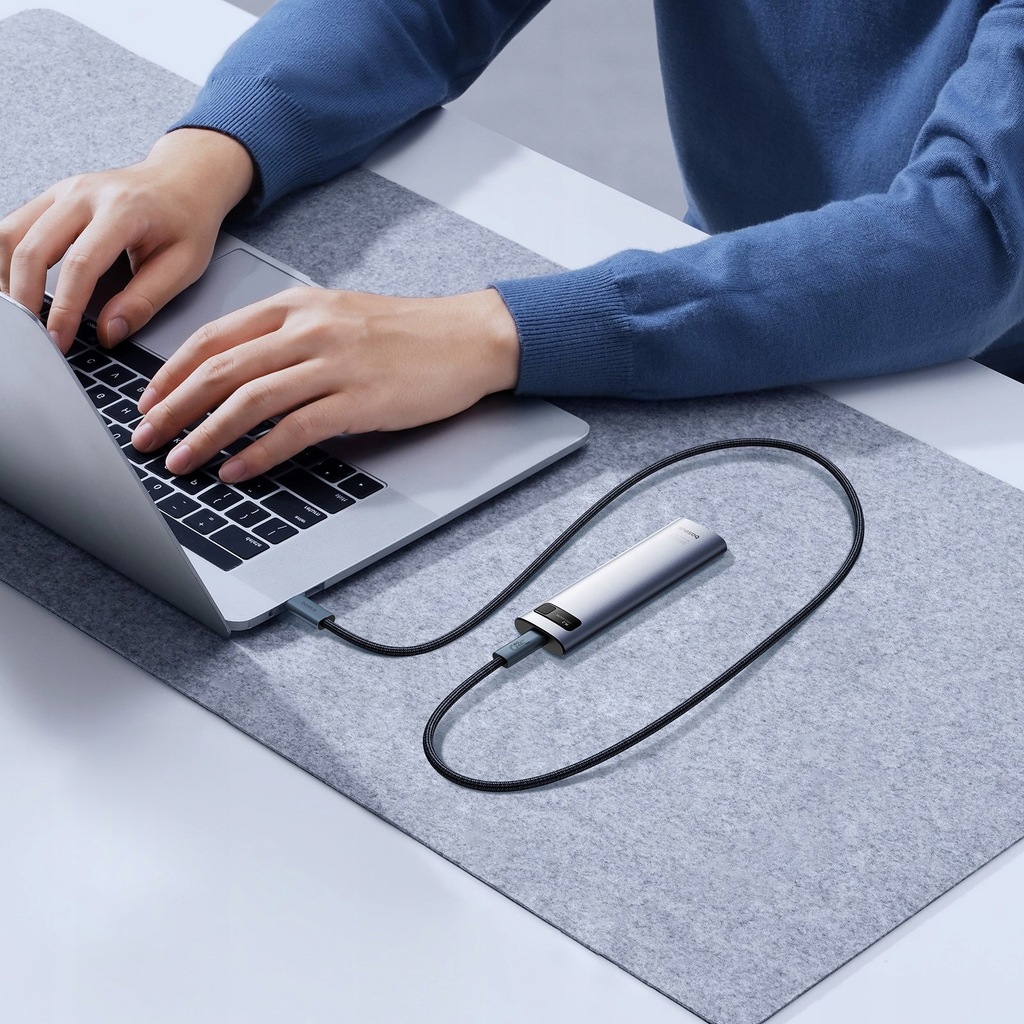 Nigdy więcej czasochłonnego przesyłania plików - kabel Baseus CB000068 pozwala na transfer z prędkością do 40 Gb/s.