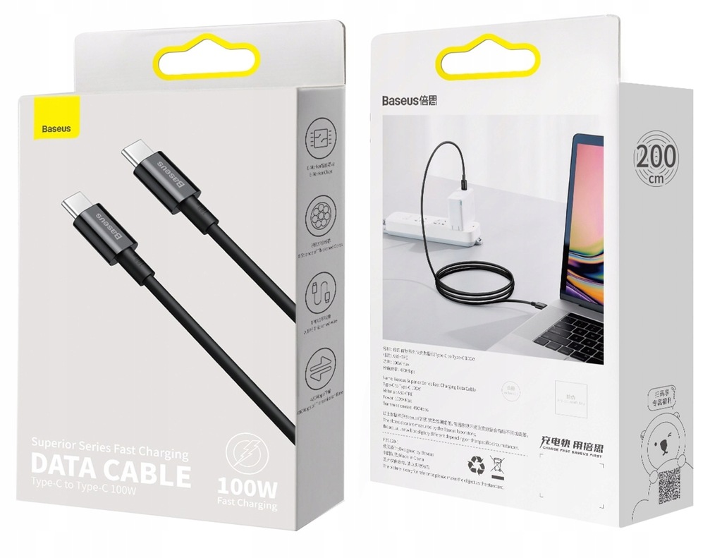 BASEUS MOCNY KABEL USB-C SZYBKIE ŁADOWANIE PRZEWÓD TYP-C PD 100W QC 5A 2M