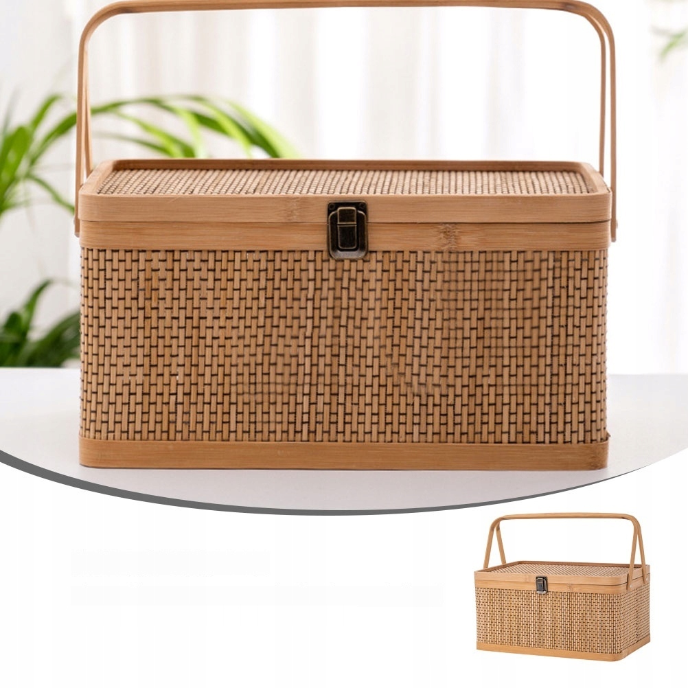 ✅This is a bamboo storage basket with exquisite workmanship and exquisite design. The ergonomic handle is comfortable to hold and very easy to move. With a cover design, it can protect the contents of the basket from being contaminated by dirty items or other things. You deserve to have.