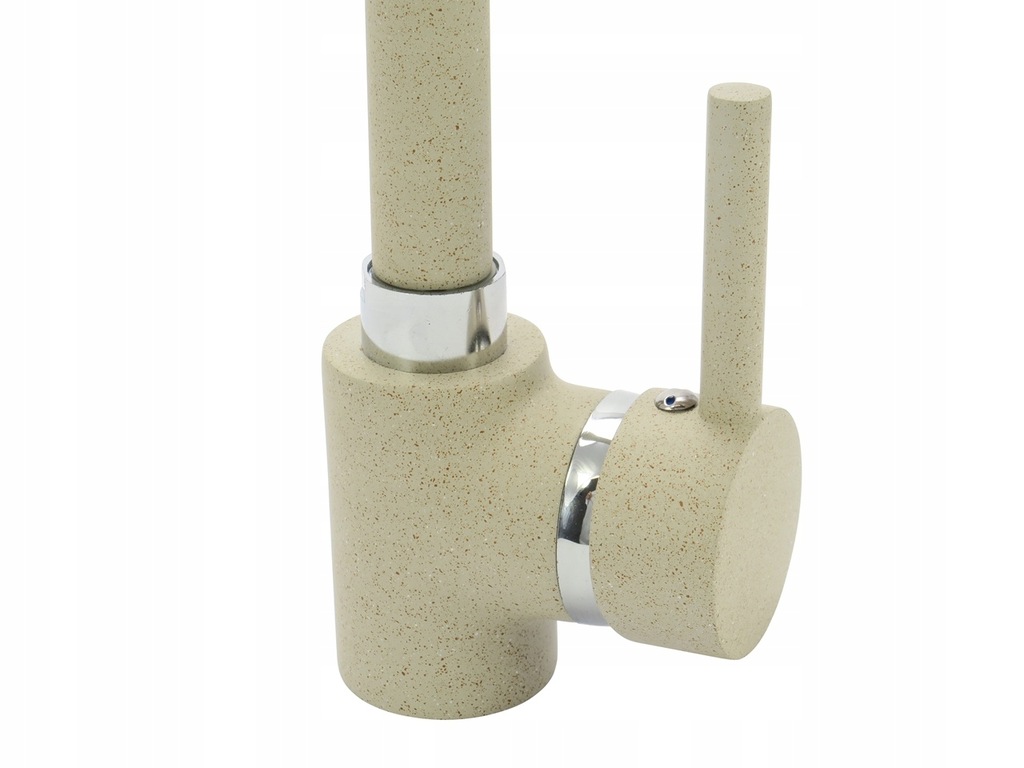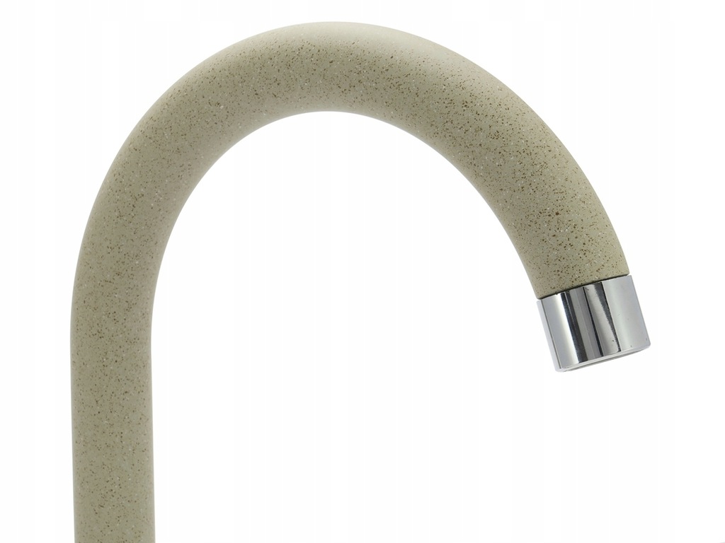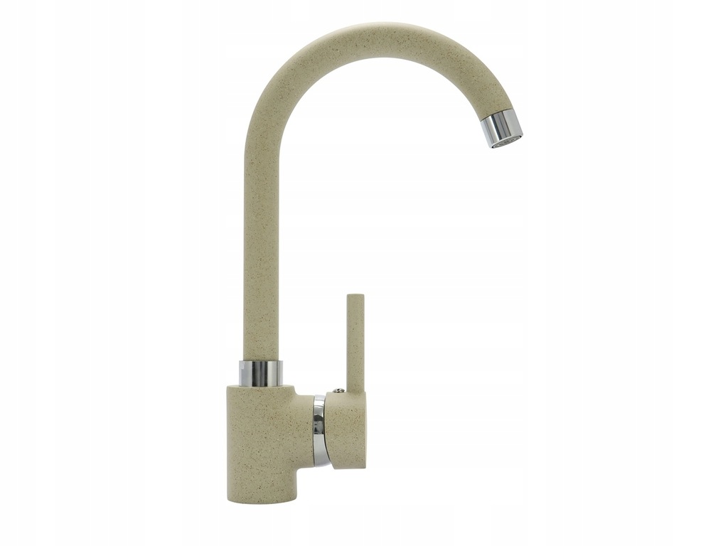 Klasyczna bateria kuchenna - stojąca. Posiada ceramiczną głowicę. Obracana w zakresie 360 stopni. Wyposażona w perlator, który pomaga zaoszczędzić zużycie wody.