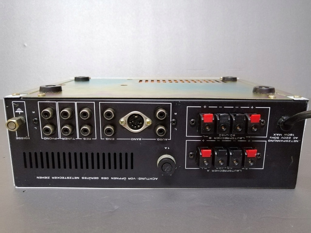 Bardzo mocny, o małych gabarytach wzmacniacz na końcówce STK, potrafi bardzo głośno zagrać. Wewnątrz i od spodu super stan, jedynie drobne ślady widoczne na zdjęciach na pokrywie.