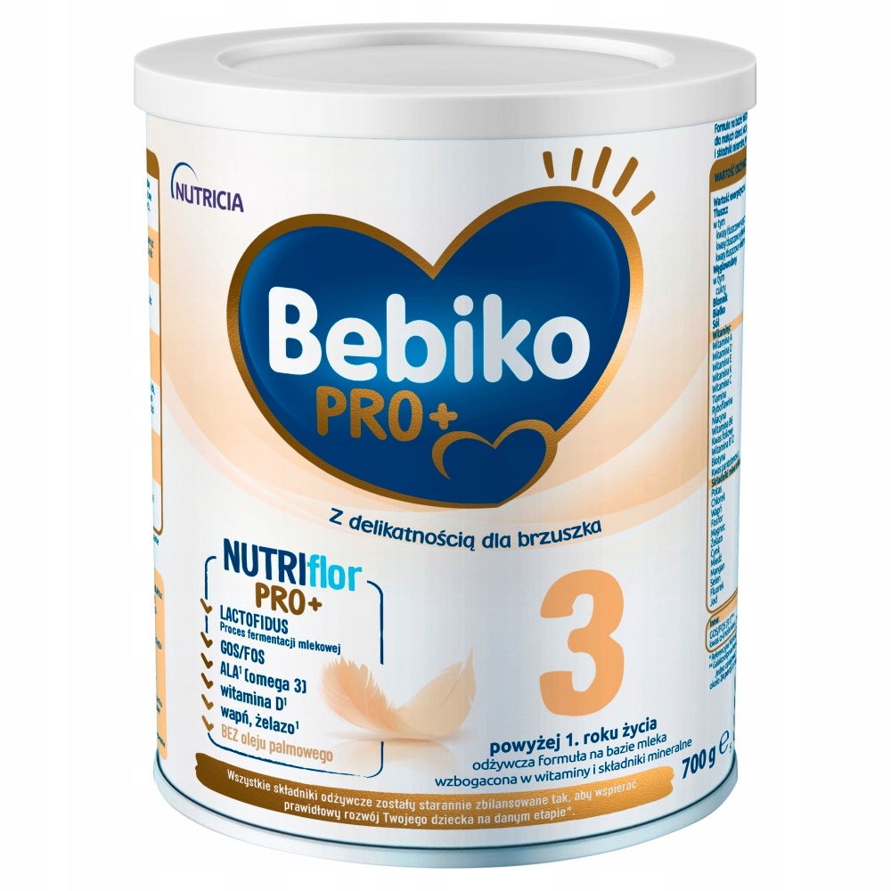Dziecko po 1. roku życia nadal intensywnie się rozwija. Jego układ pokarmowy wciąż dojrzewa i potrzebuje delikatnego traktowania i dopasowanego sposobu żywienia. Bebiko Pro+ 3 to najdelikatniejsza formuła wśród podobnych produktów Bebiko przeznaczonych dla małych dzieci. Odpowiada potrzebom wciąż dojrzewających brzuszków dzięki wyjątkowej kompozycji składników, wspierającej prawidłowy rozwój dziecka.