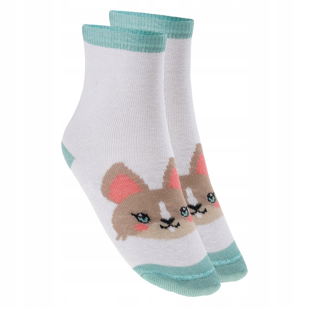 72% bawełna, 14% poliester, 12% poliamid, 2% elastan. Wzór: kontrastowe detale, serca, królik. Opakowanie: eurohak, karta nagłówkowa. Mankiet: prążkowany.