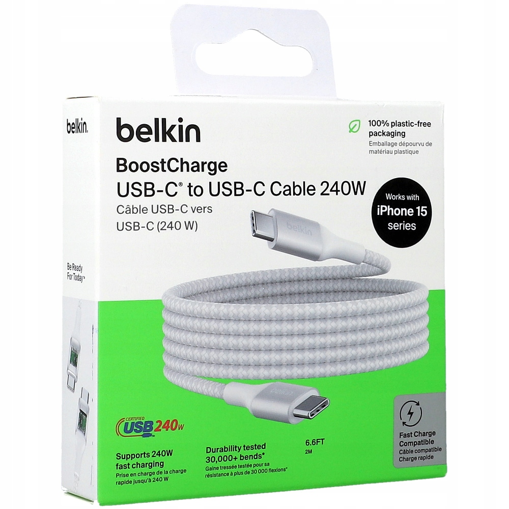 Belkin | Kabel USB-C | Męski | 24 pin USB-C | Męski | Biały | 24 pin USB-C | 2 m
