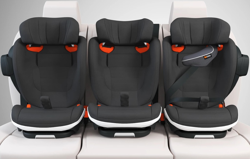 - Osłony boczne SIP + można bardzo łatwo demontować, co pozwala na montaż do trzech fotelików jednocześnie z tyłu pojazdu. Chociaż iZI Flex Fix jest również bezpieczny bez dodatkowego SIP + od strony drzwi, zgodnie z regulaminem ONZ R129-02, BeSafe zaleca jego stosowanie.