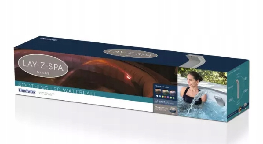 Wodospad do LAY-Z-SPA LED to propozycja od firmy Bestway na zbliżające się lato! Wodospad na pewno sprawi radość jak również zapewni przyjemny relaks podczas kąpieli w przydomowym spa Wodospad jest łatwy w użyciu, kompatybilny ze wszystkimi spa Bestway AirJet i AirJet Plus. Dzięki klasie wodoodporności IP66 lampa LED jest chroniona przed silnymi strumieniami wody i codziennym kurzem, dzięki czemu możesz cieszyć się relaksującą atmosferą stworzoną przez to akcesorium przez wiele lat Wszystko, co musisz zrobić, to włożyć baterie, zamontować wodospad na ścianie spa dzięki praktycznemu magnetycznemu systemowi mocowania i nacisnąć przycisk, aby uruchomić kolorowe światło.