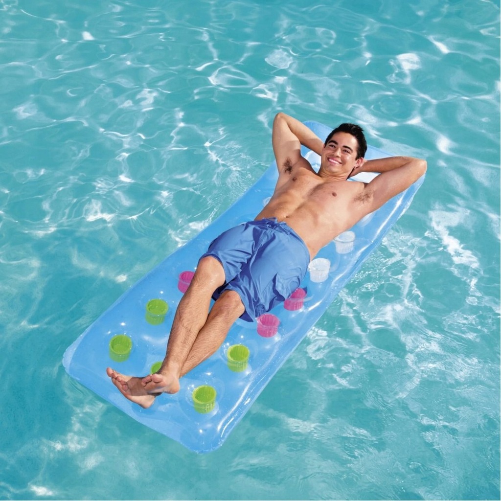 Materac do pływania firmy Bestway to idealne rozwiązanie na letni wypoczynek nad morzem, jeziorem w basenie czy we własnym ogrodzie. Dmuchany materac wykonany jest z wytrzymałego materiału PCV, który posłuży przez klika lat. Charakterystyczną cechą nadmuchiwanego materaca jest przezroczyste okienko w zagłówku, umożliwiające podziwianie podwodnego świata. Materac do pływania to wspaniała propozycja dla osób ceniących wygodę i relaks na świeżym powietrzu.