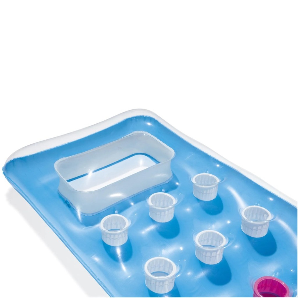 Nadmuchiwany materac świetnie sprawdzi się na wakacjach nad wodą, zarówno nad morzem czy jeziorem, ale także na basenie. Można skorzystać z niego nawet we własnym ogrodzie w upalne letnie dni. Materac o pływania zapewnia wygodny odpoczynek, a dodatkową stabilność zapewnia dwukomorowa konstrukcja, umożliwiająca równomierne napompowanie. Wykonany jest z wytrzymałego materiału PCV, a w razie uszkodzenia, do zestawu dołączona jest łatka naprawcza. Nienapompowany materac zajmuje mało miejsca, dzięki czemu łatwo zabrać go w każde miejsce.