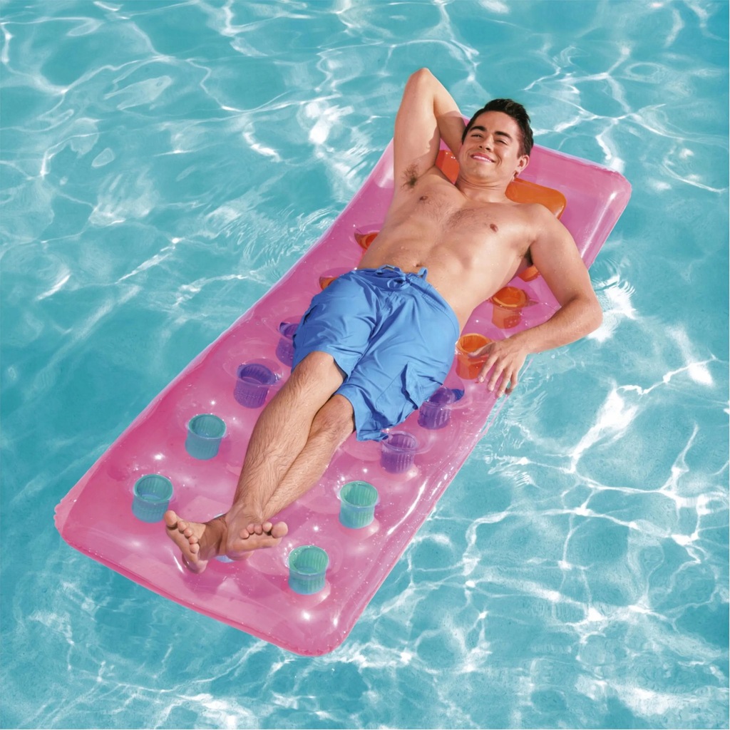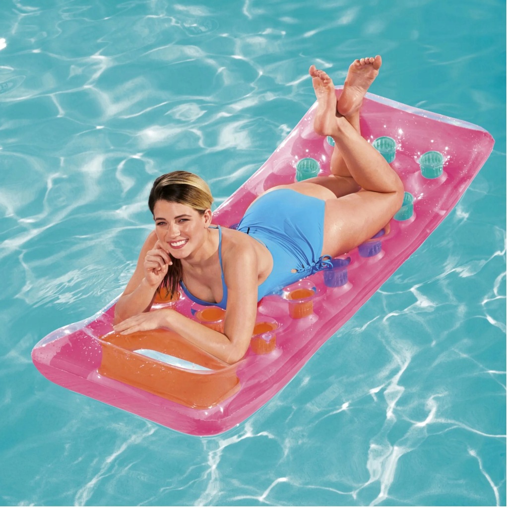 Materac do pływania firmy Bestway to idealne rozwiązanie na letni wypoczynek nad morzem, jeziorem w basenie czy we własnym ogrodzie. Dmuchany materac wykonany jest z wytrzymałego materiału PCV, który posłuży przez klika lat. Charakterystyczną cechą nadmuchiwanego materaca jest przezroczyste okienko w zagłówku, umożliwiające podziwianie podwodnego świata. Materac do pływania to wspaniała propozycja dla osób ceniących wygodę i relaks na świeżym powietrzu.