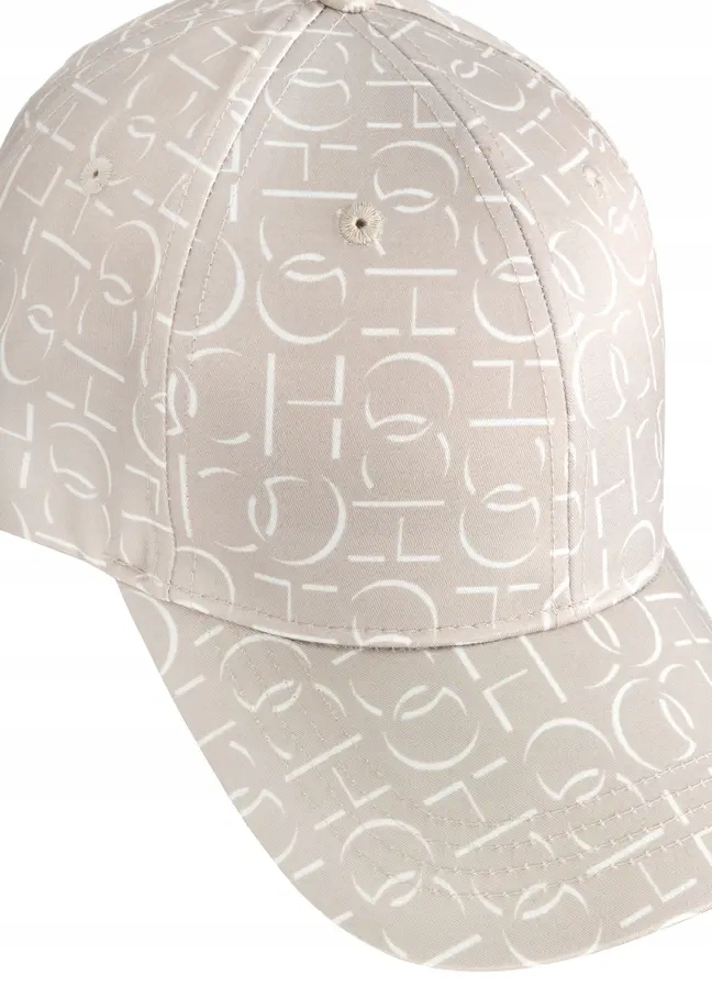 Czapka unisex z daszkiem w kolorze beżowym, zdobiona na całej powierzchni napisem „OCH”. Model stworzony dla osób, które preferują w swojej garderobie ciekawe, sportowe stylizacje.
