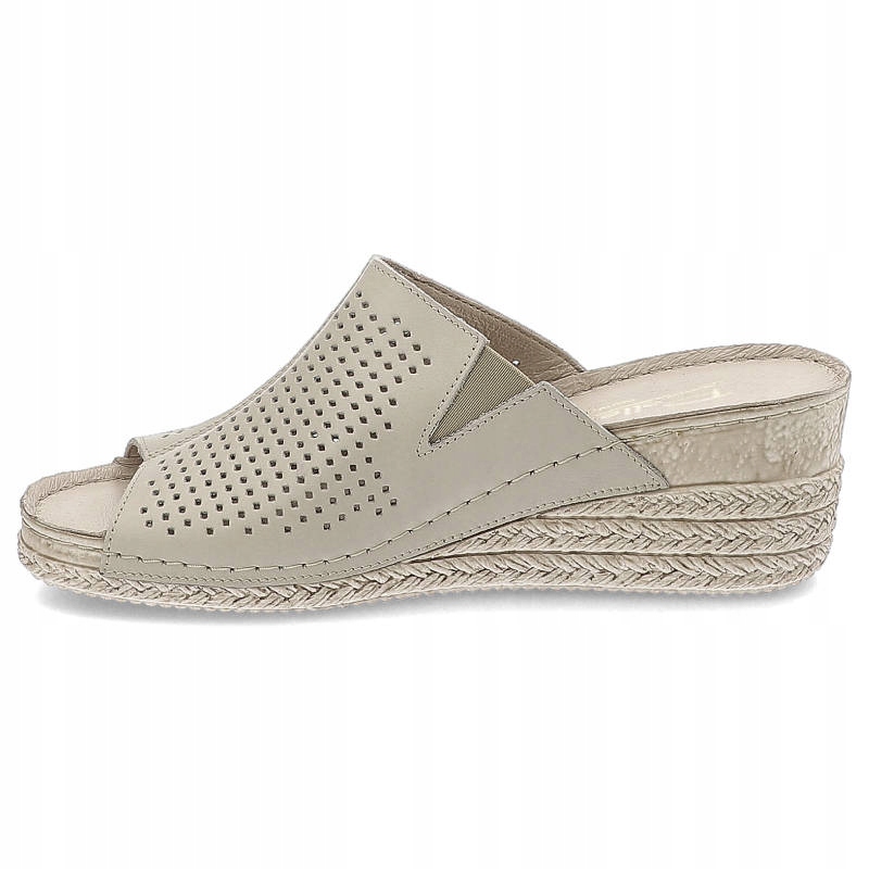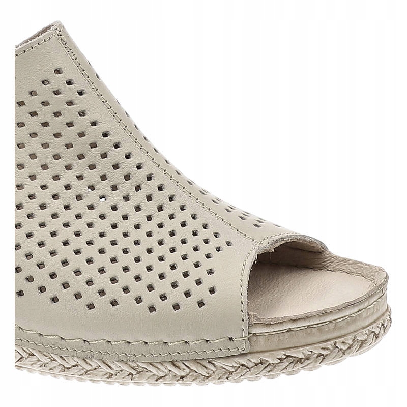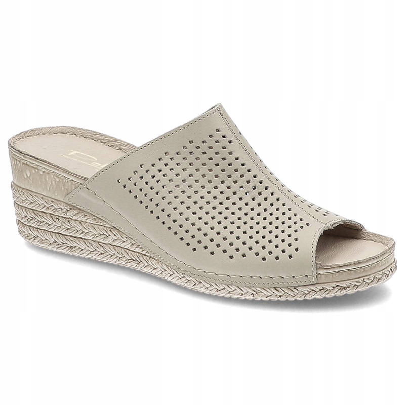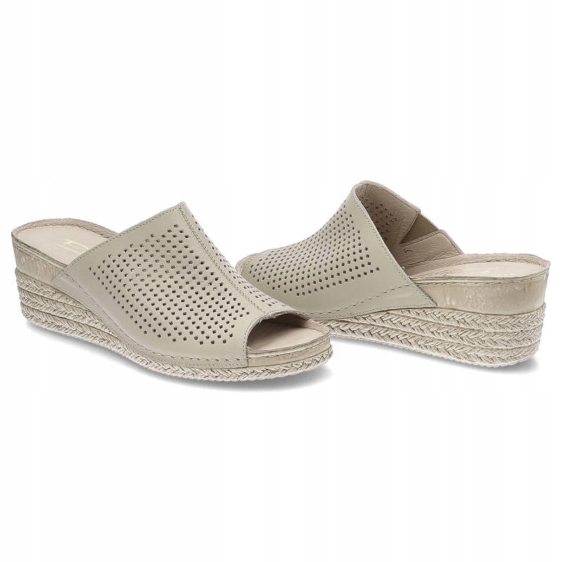 Beżowe Klapki Pollonus Damskie Skórzane Buty