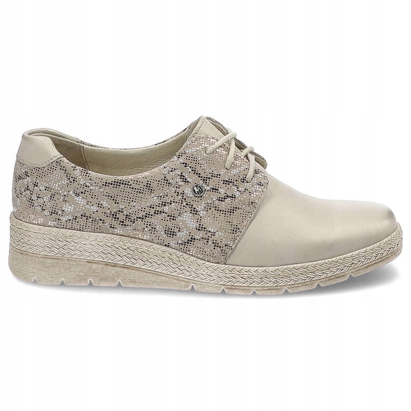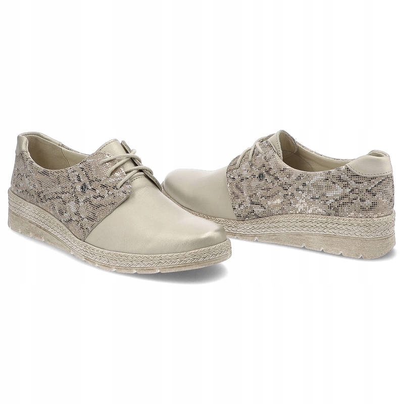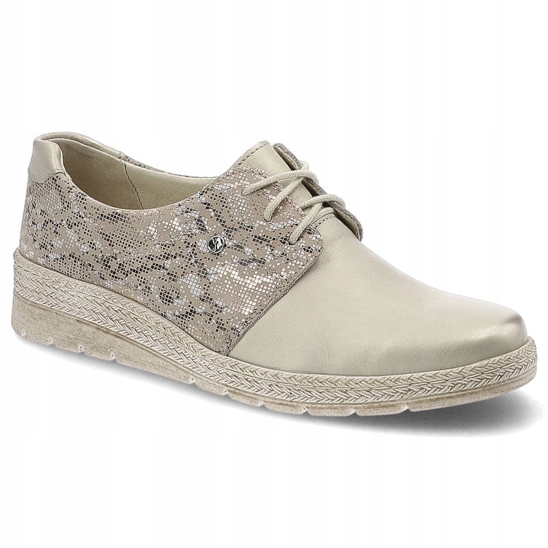 Beżowe Półbuty Helios Wygodne Skórzane Buty Damskie