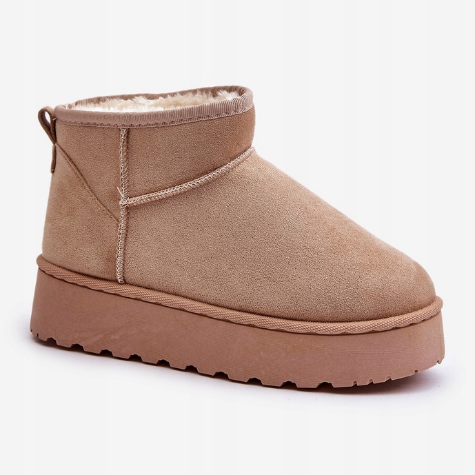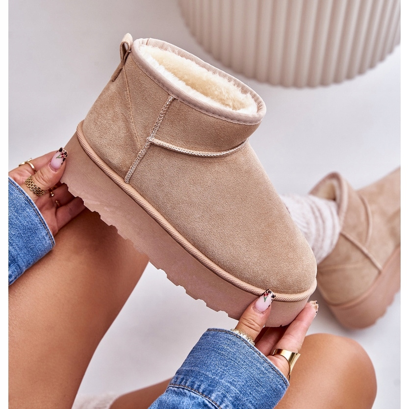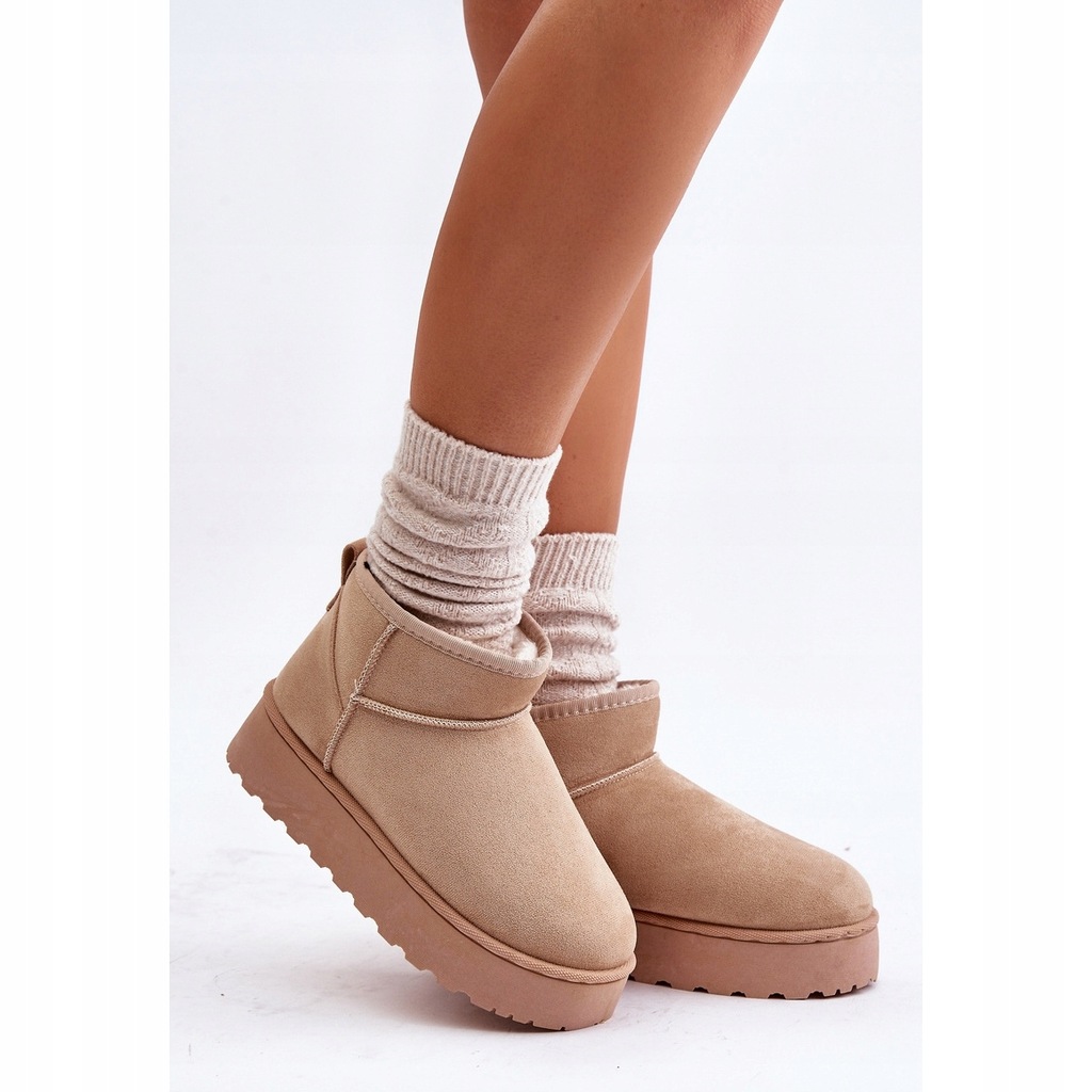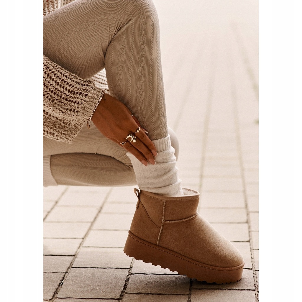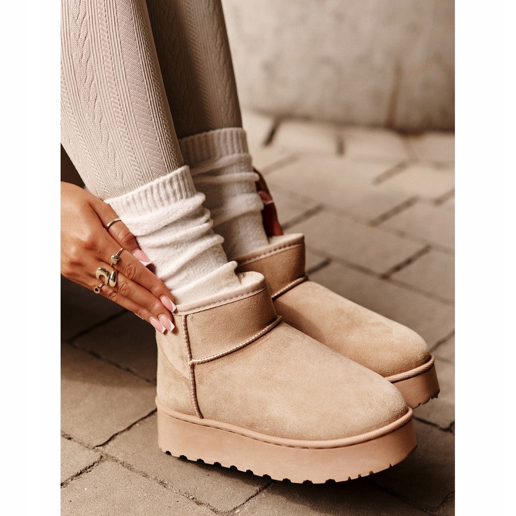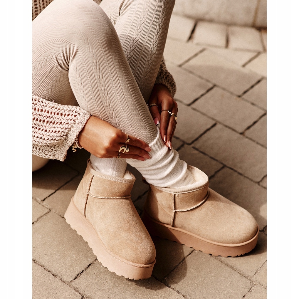 Modne śniegowce z cholewką za kostkę. Wewnątrz ocieplone grubym, syntetycznym futerkiem. Wykonane z eko zamszu. Osadzone na grubej platformie z gumowego tworzywa, która świetnie odizoluje od zimnego podłoża. Idealnie sprawdzą się podczas mroźnych dni. Modny od kilku sezonów fason świetnie wpasuje się w jesienno-zimowe stylizacje! Model ten dostępny jest również w rozmiarach dziecięcych. Stwórz komplet mama + dziecko! Przy wyborze rozmiaru prosimy sugerować się tabelą rozmiarów.