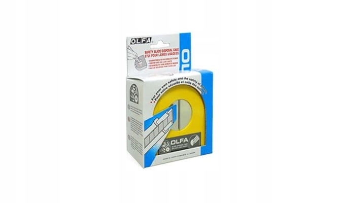 Pojemnik OLFA wyposażony jest w bezpieczny odłamywacz stępionych segmentów i pozwala na bezpieczne przechowanie zużytych ostrzy i odłamanych segmentów do czasu przekazania ich do kontrolowanego zniszczenia lub przerobu na złom.