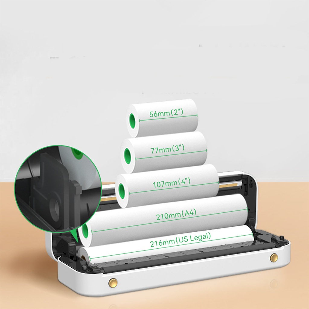 【Wiele rozmiarów drukowania】 Z 2 klipsami do regulacji szerokości szczeliny na papier, drukarka termiczna A40 obsługuje teraz szerokość papieru termicznego 210mm/107mm/77mm/56mm (A4/4"/3"/2"), różne rozmiary papieru do zaspokoją Twoje potrzeby w zakresie drukowania przy wielu okazjach, a także obsługują papier w rolce i papier składany.