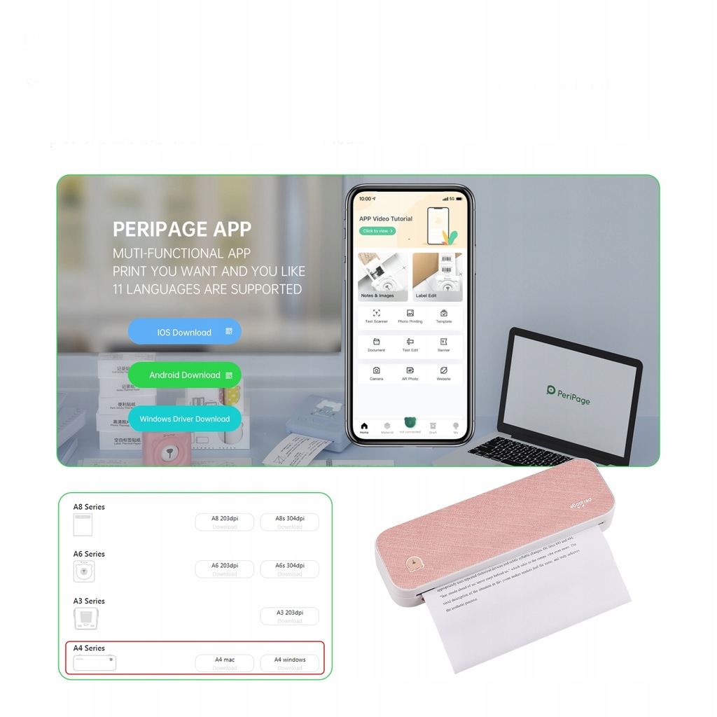 【Drukarka All in One】 Drukarka mobilna PeriPage A40, idealna do drukowania pliku PDF, papieru testowego, strony internetowej, umowy, zdjęcia, obrazu itp. Doskonały pomocnik do nauki i pracy biurowej.