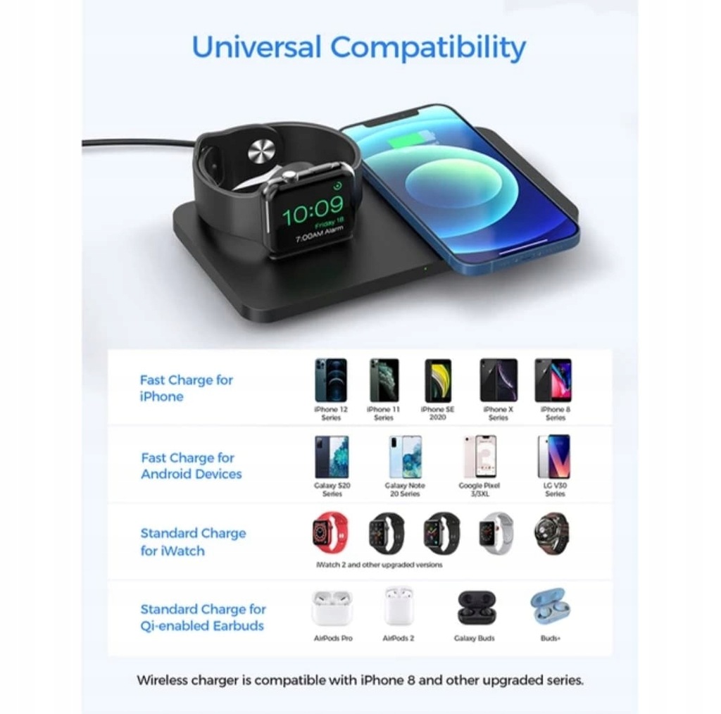 Bezprzewodowa ładowarka jest kompatybilna z iPhone 8 i innymi ulepszonymi seriami.